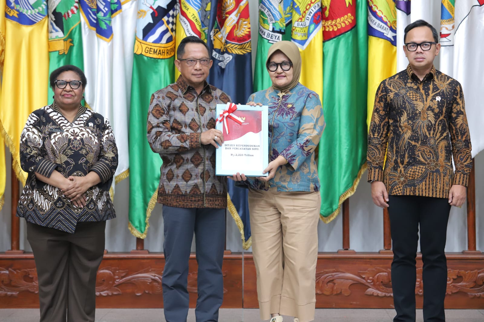 Katapublik Jatim//Jakarta – Plh. Dirjen Dukcapil Kemendagri, Handayani Ningrum, menerima secara resmi penyerahan Daftar Isian Pelaksanaan Anggaran (DIPA) Tahun Anggaran 2025 dari Menteri Dalam Negeri (Mendagri), Tito Karnavian, di Ruang Rapat Sasana Bhakti Praja, Kantor Kementerian Dalam Negeri, Jakarta Pusat, Kamis (12/12/2024).