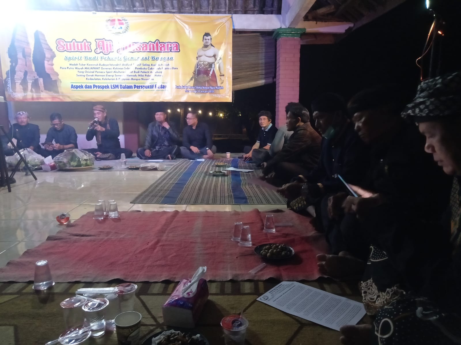 Sebagai salah satu wadah untuk tokoh tokoh pegiat budaya di wilayah Mojokerto raya Suluk Aji Nusantara menegaskan bahwa acara kemarin malam merupakan agenda yang ke 8, didalam rutinitas kegiatannya. Tema yang diangkat di acara diskusi bersama ialah aspek dan prospek LSM (Lembaga Swadaya Masyarakat) dalam prespektif budaya.