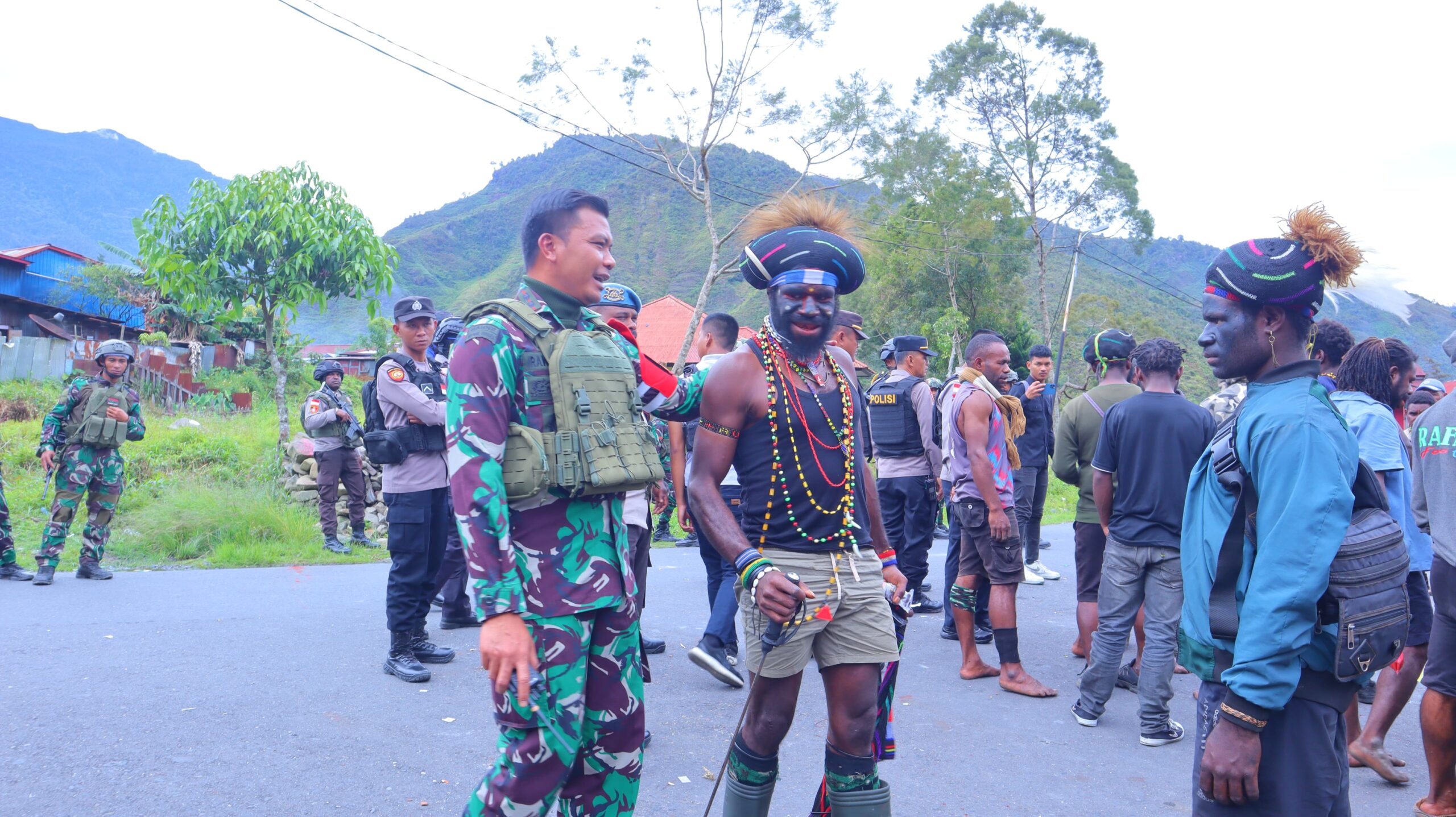 Patroli gabungan TNI-POLRI untuk keamanan daerah Puncak Jaya, Patroli gabungan ini melibatkan ratusan aparat keamanan dari Kodim 1714/PJ, Polres Puncak Jaya dan Satgas Yonif Raider 715/MTL, Satgas Yonif Raider 112/DJ serta Brimob Yon B Polda Papua BKO Puncak Jaya. Personel menyusuri jalan dari Mako Polres Puncak Jaya, kota baru, menuju ke kota lama, bandara Mulia, dan berakhir di Makodim 1714/PJ, guna memastikan situasi tetap kondusif.
